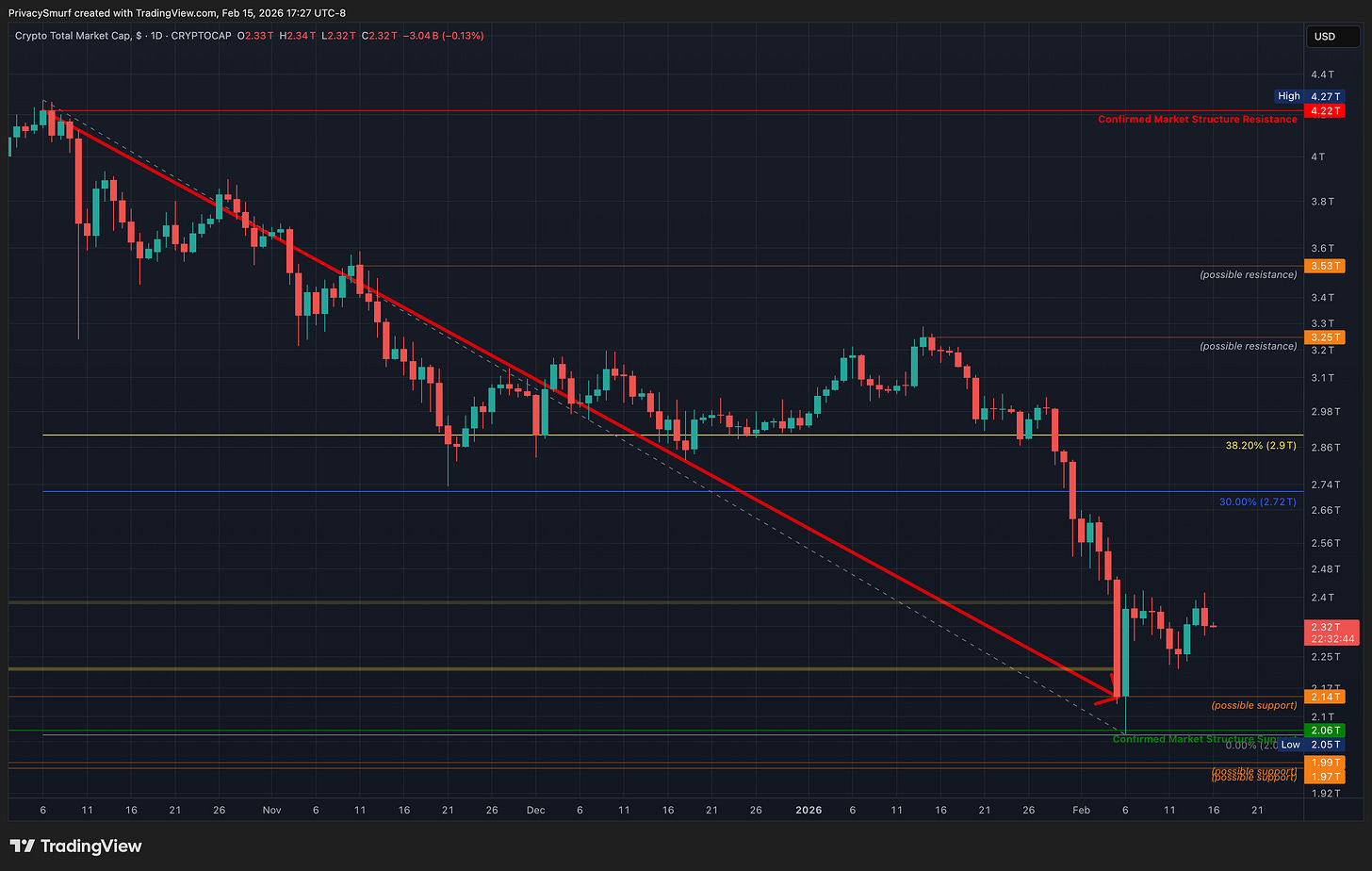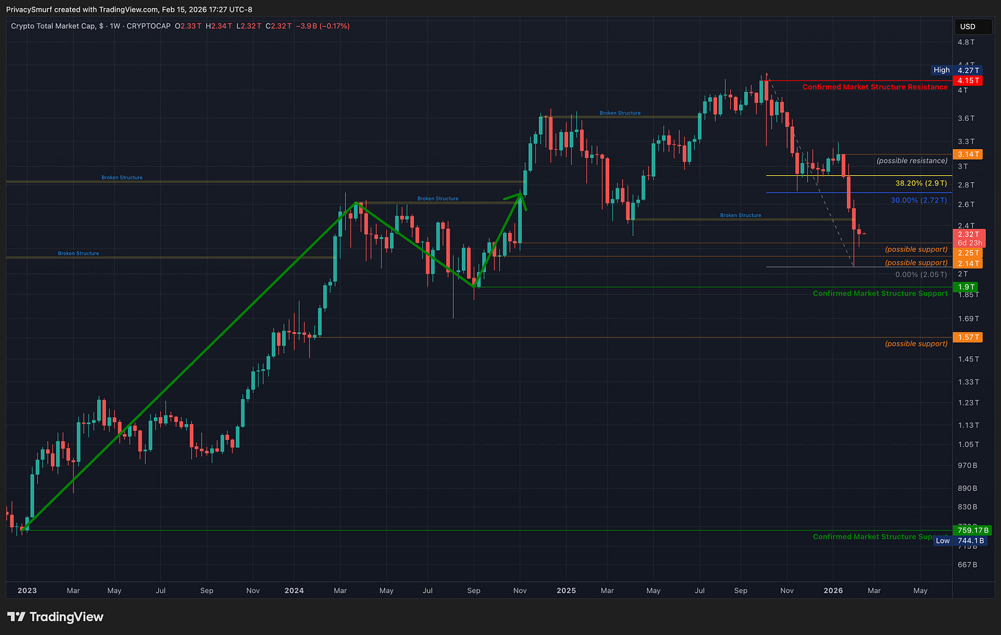 Bullish: Invalidated with the close below $2.46T. Must wait for more weekly structure to build out over time. We are now in a neutral market structure.